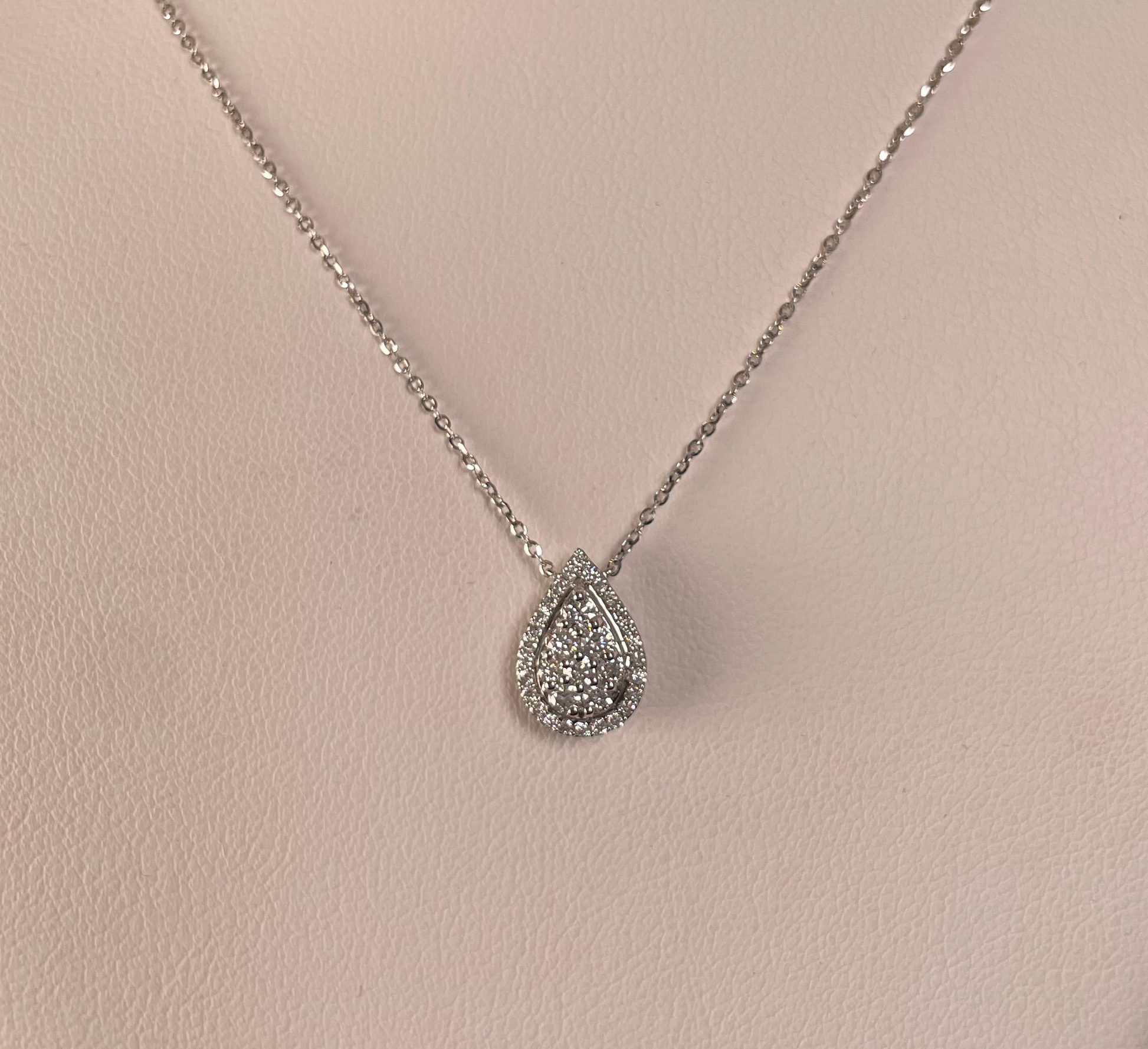 18ct White Gold Pear Shape Pave Set Diamond Pendant Necklace