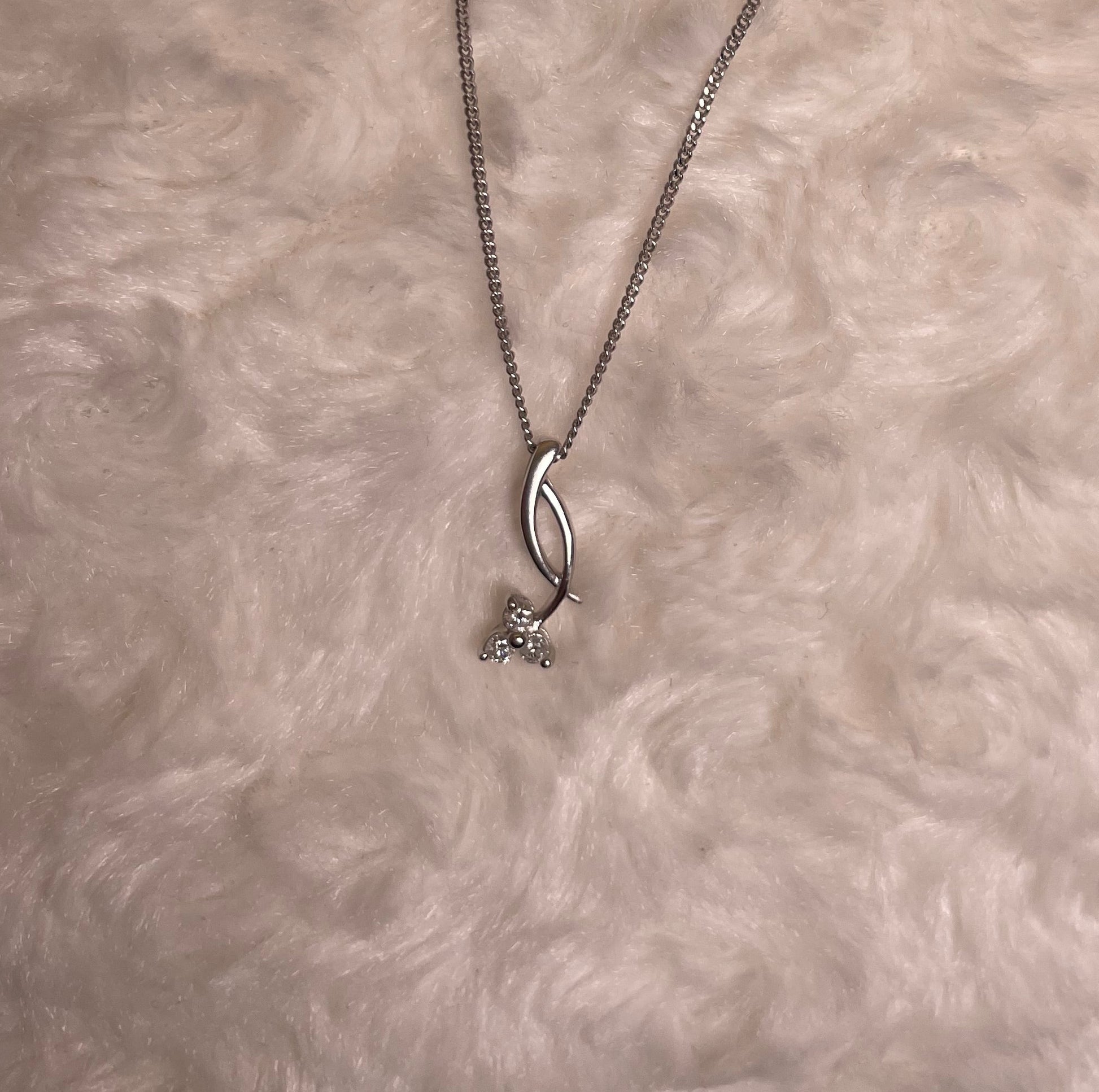9ct White Gold Drop Pendant set with Diamonds Necklace