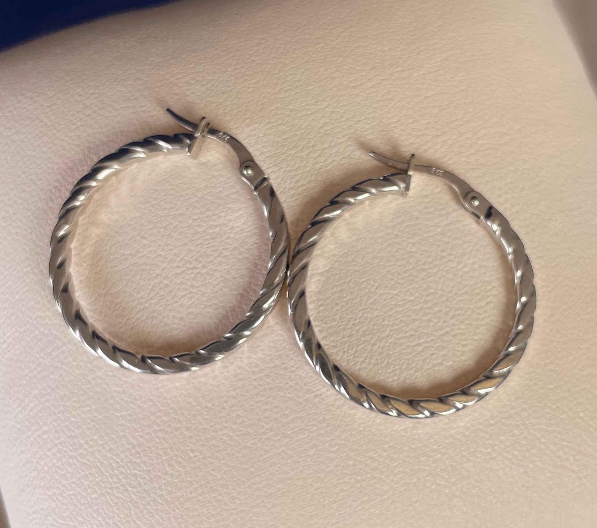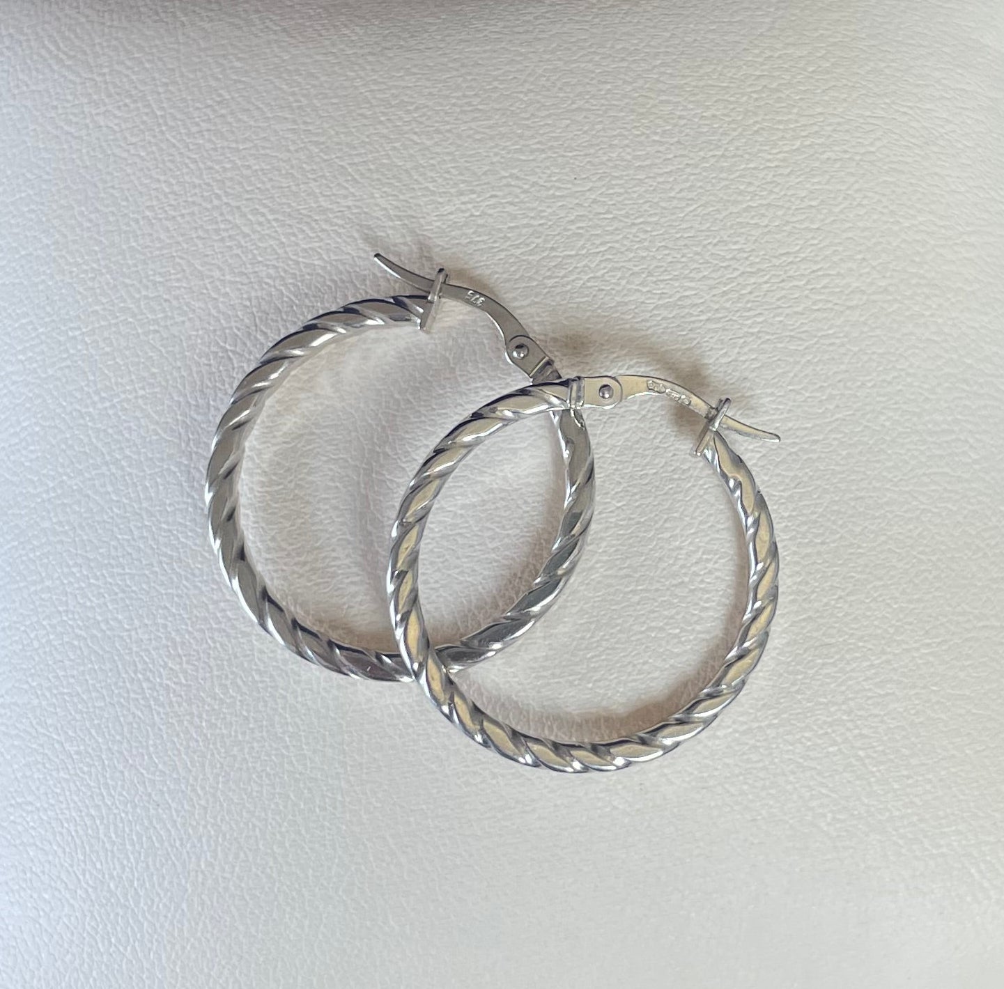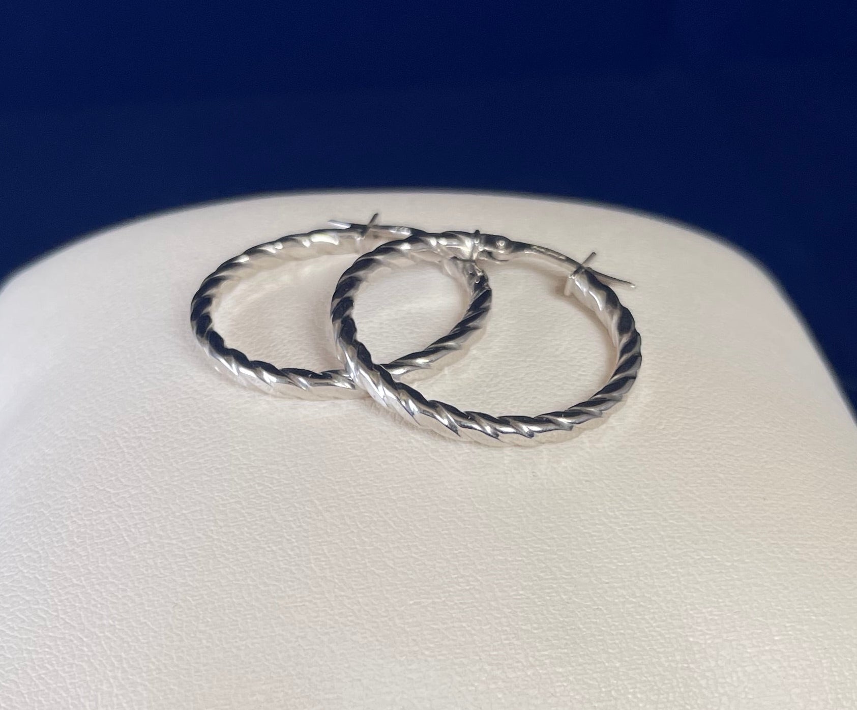 Introducing a twist on the classic: these 9ct white gold hoops feature a playful flat design that adds dimension without the drama. Feather-light at 1.9g and sized at a comfortable 25x25mm, they're made for those who want jewellery that keeps up with their lifestyle. Slip them on and let them do the talking—understated elegance with a subtle wink.