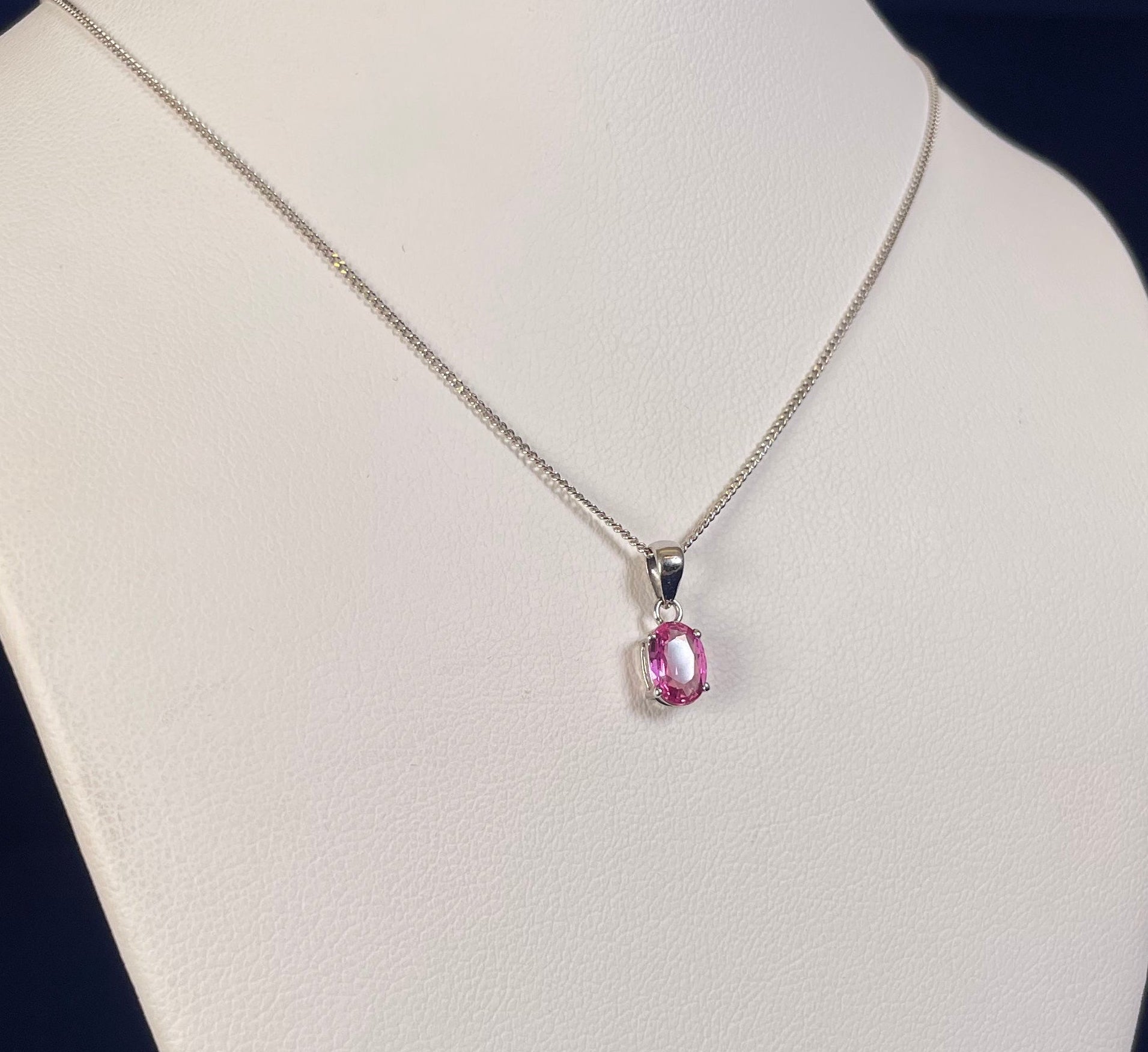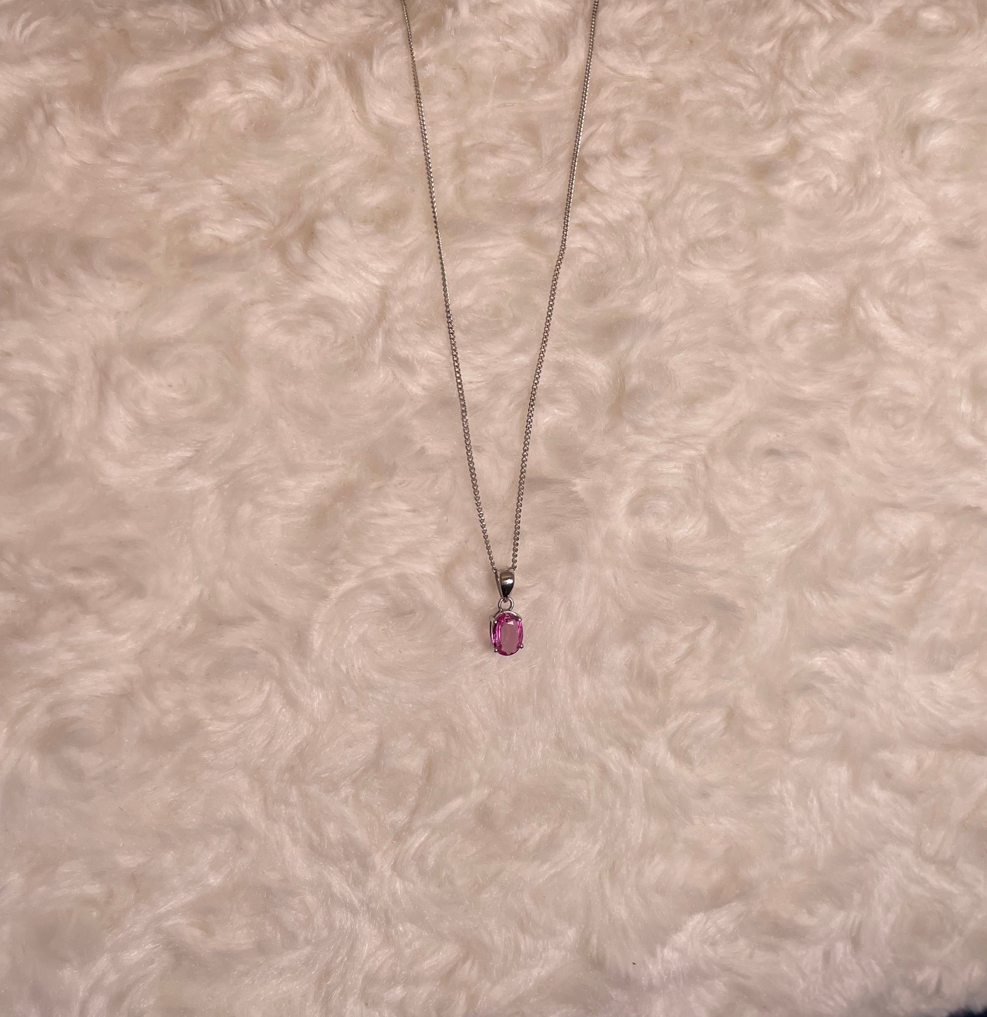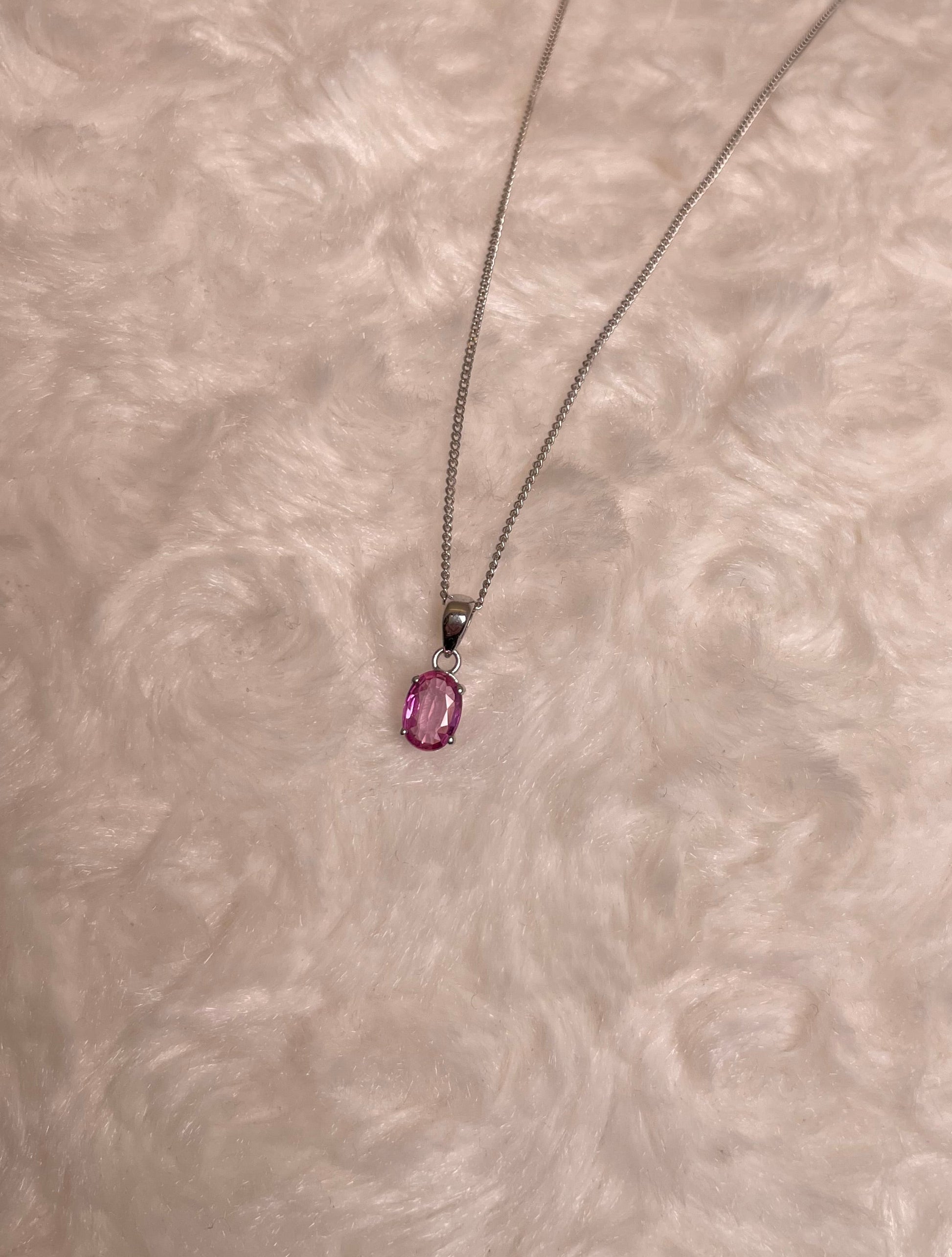 9ct White Gold Oval Pink Sapphire Pendant Necklace