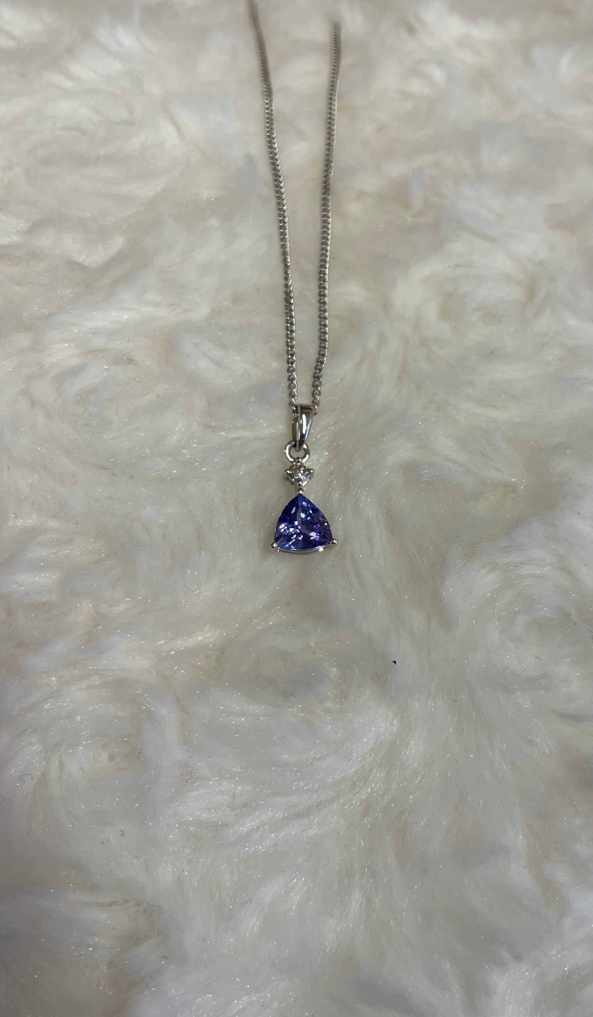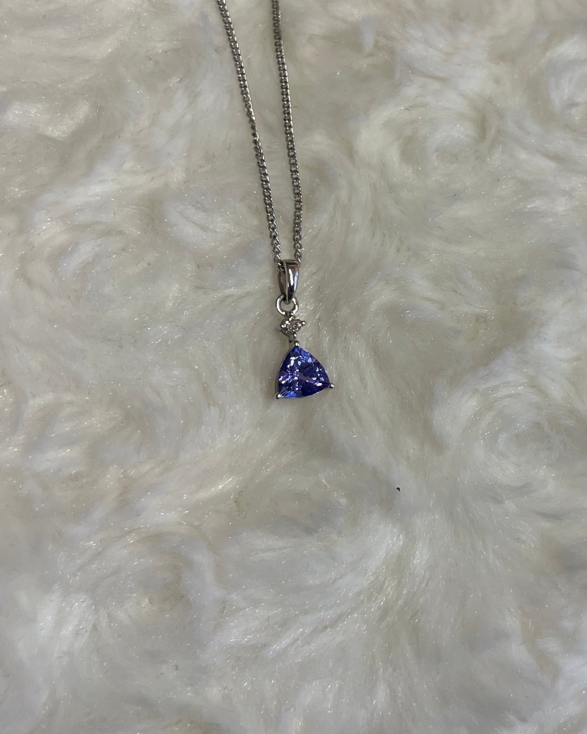 9ct White Gold Triangle Tanzanite Pendant with Small Diamond Necklace
