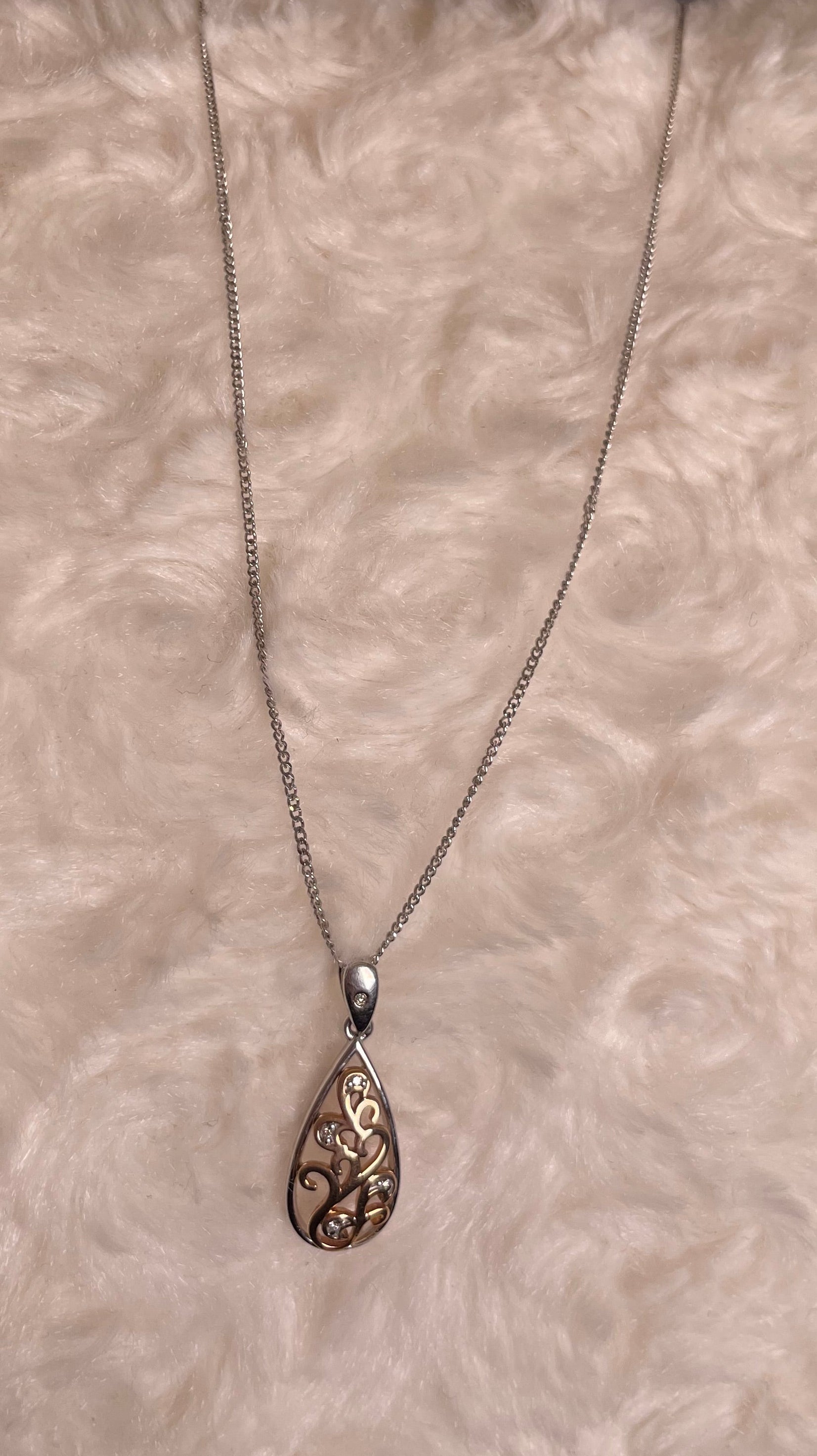 9ct White & Rose Gold Pear Shape Pendant set with Diamonds Necklace