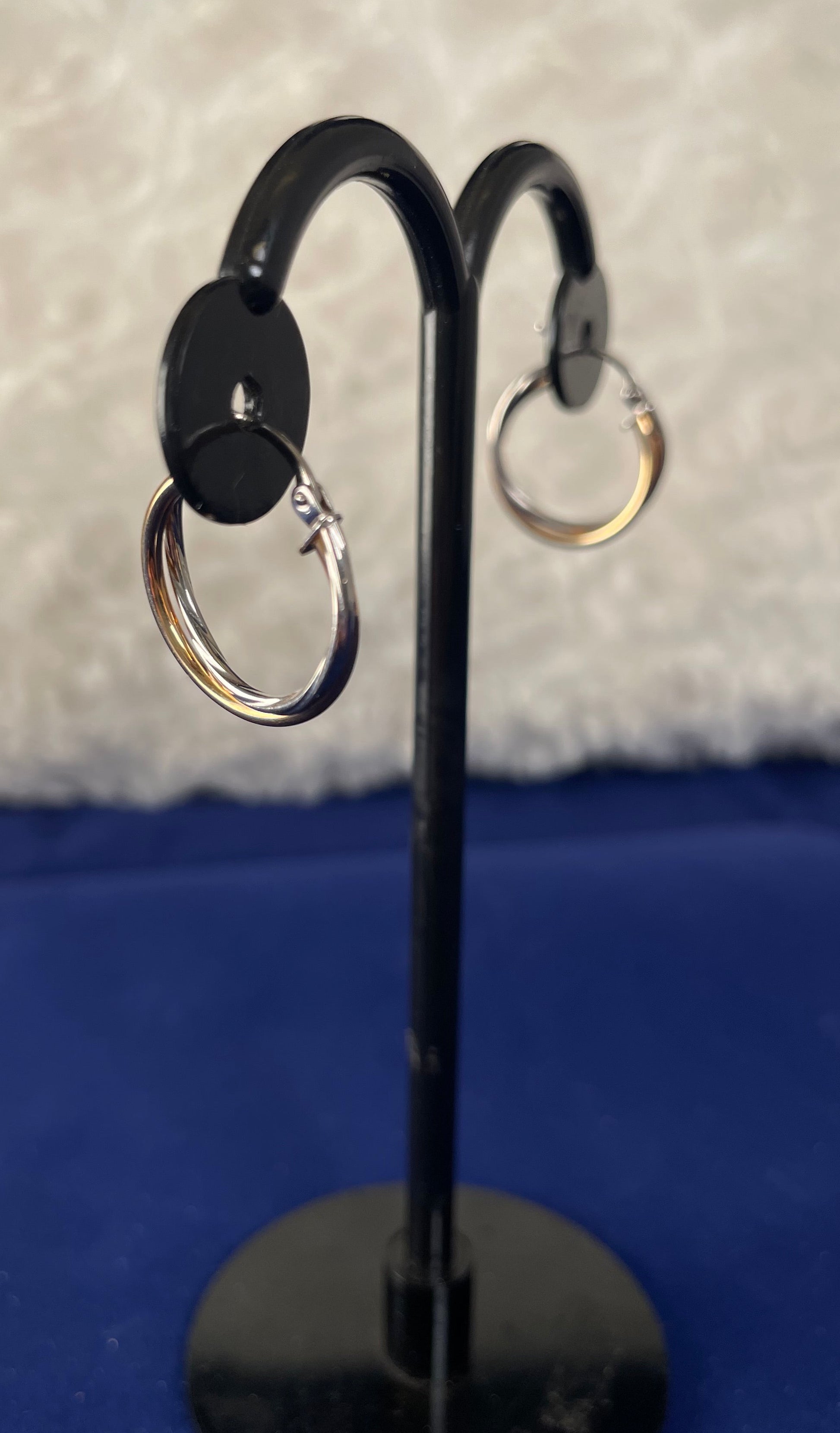 These charming Russian hoops blend the best of both worlds—crisp white gold paired with warm yellow gold for a delightfully mixed-metal look. Featuring a secure hinged fitting, they're as practical as they are pretty. Weighing just 1.2g with a dainty 18.4mm diameter and 2.9mm width, they're the perfect everyday sparkle that won't weigh you down. A timeless design with a modern twist!