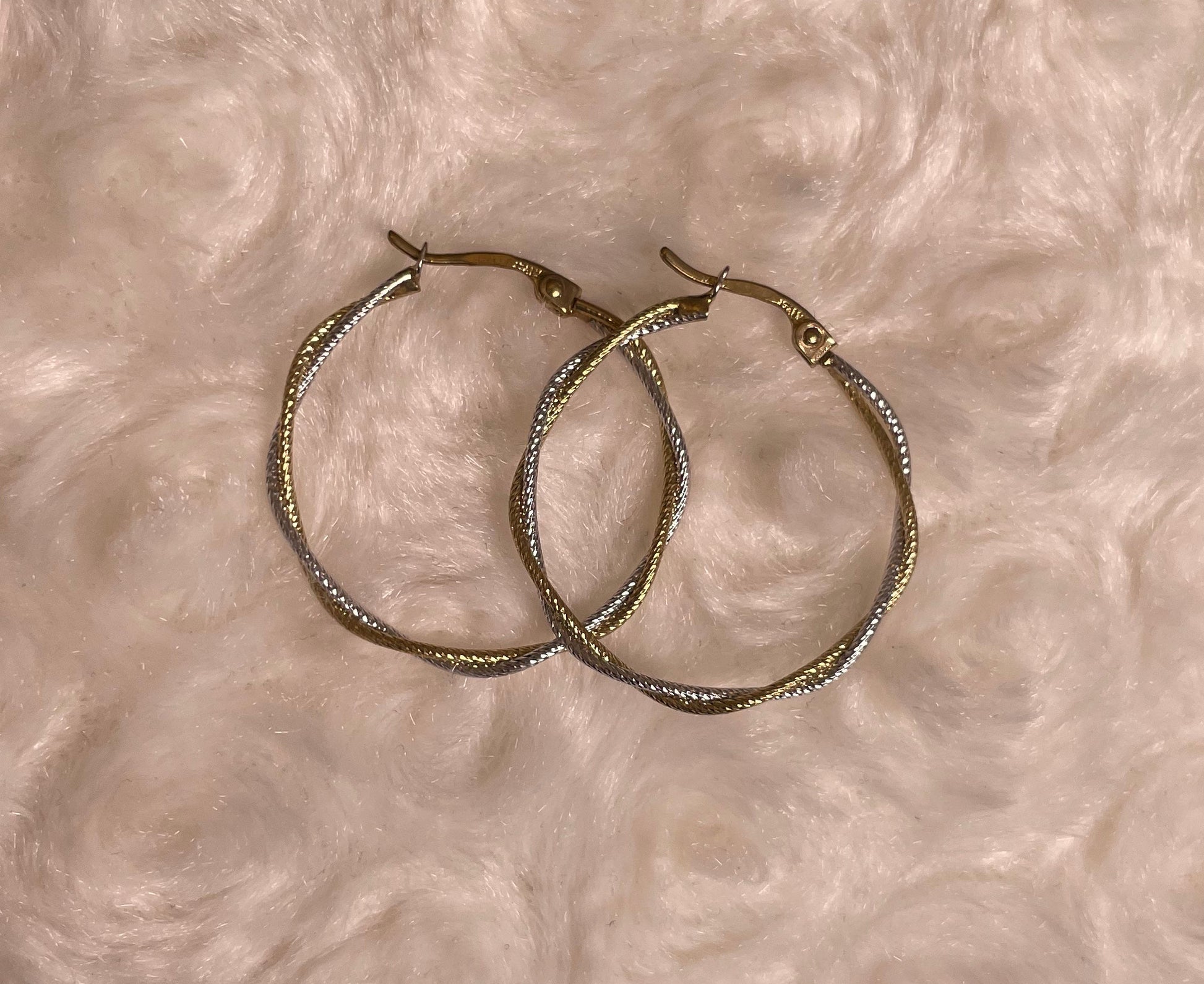 9ct White & Yellow Gold Twisted Wire Hoop Earrings