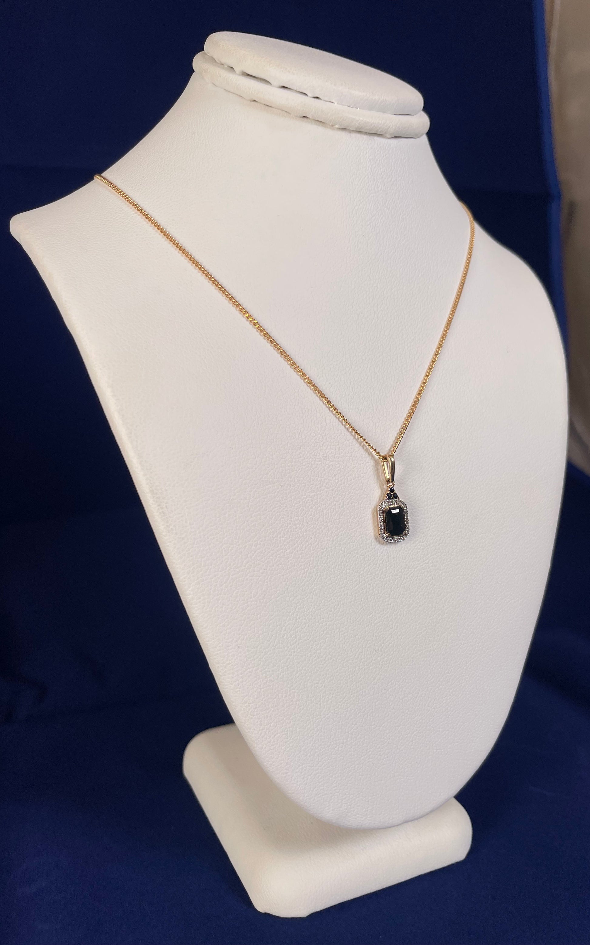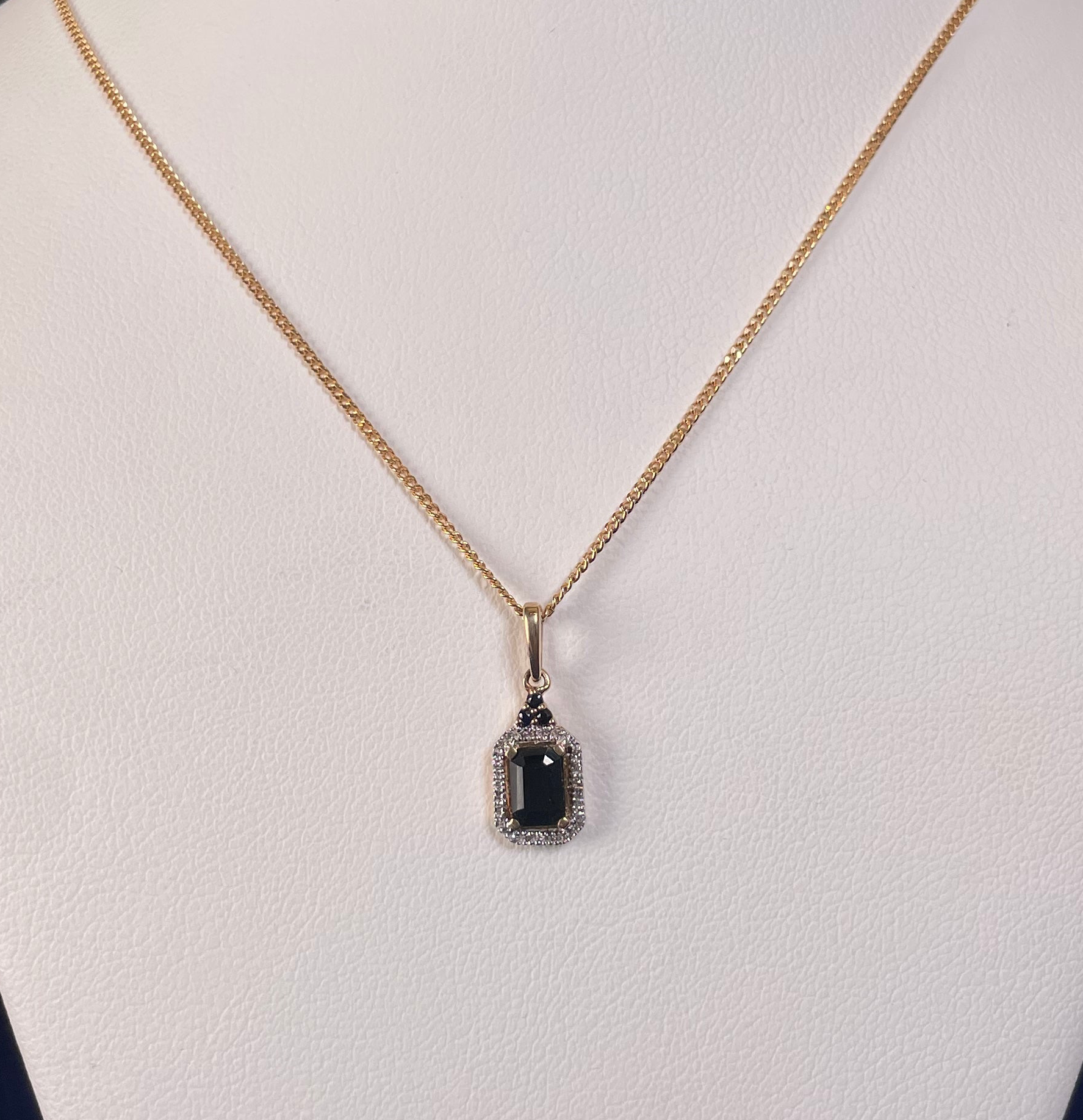 Elevate your everyday elegance with this charming 9ct yellow gold pendant that's equal parts sophisticated and fun. At its heart sits a stunning emerald-cut red sapphire (4x5.9mm) surrounded by a sprinkle of delicate diamonds—because who says gemstones can't have a little sparkle squad? Weighing just 0.8g, this petite beauty (10x6.5mm) pairs perfectly with the included 16-inch curb chain (1.7g, 1.2mm thick) for an effortlessly chic look that works from day to night. A timeless piece with personality to spare.