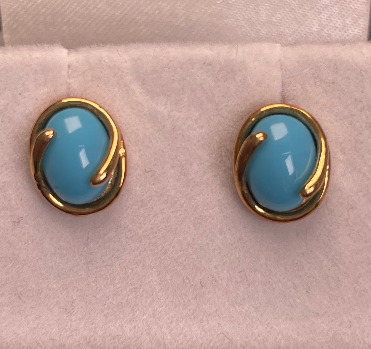 9ct Yellow Gold Oval Cabochon Turquoise Stud Earring