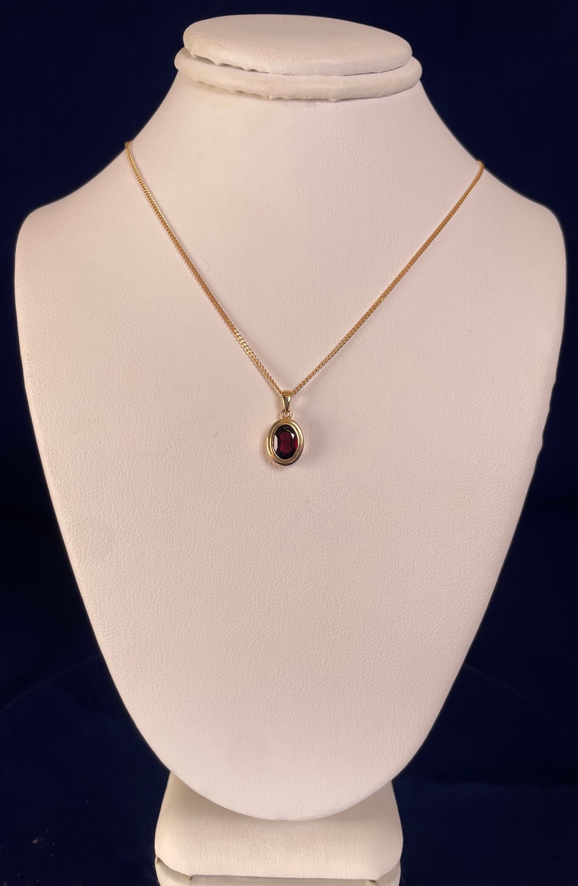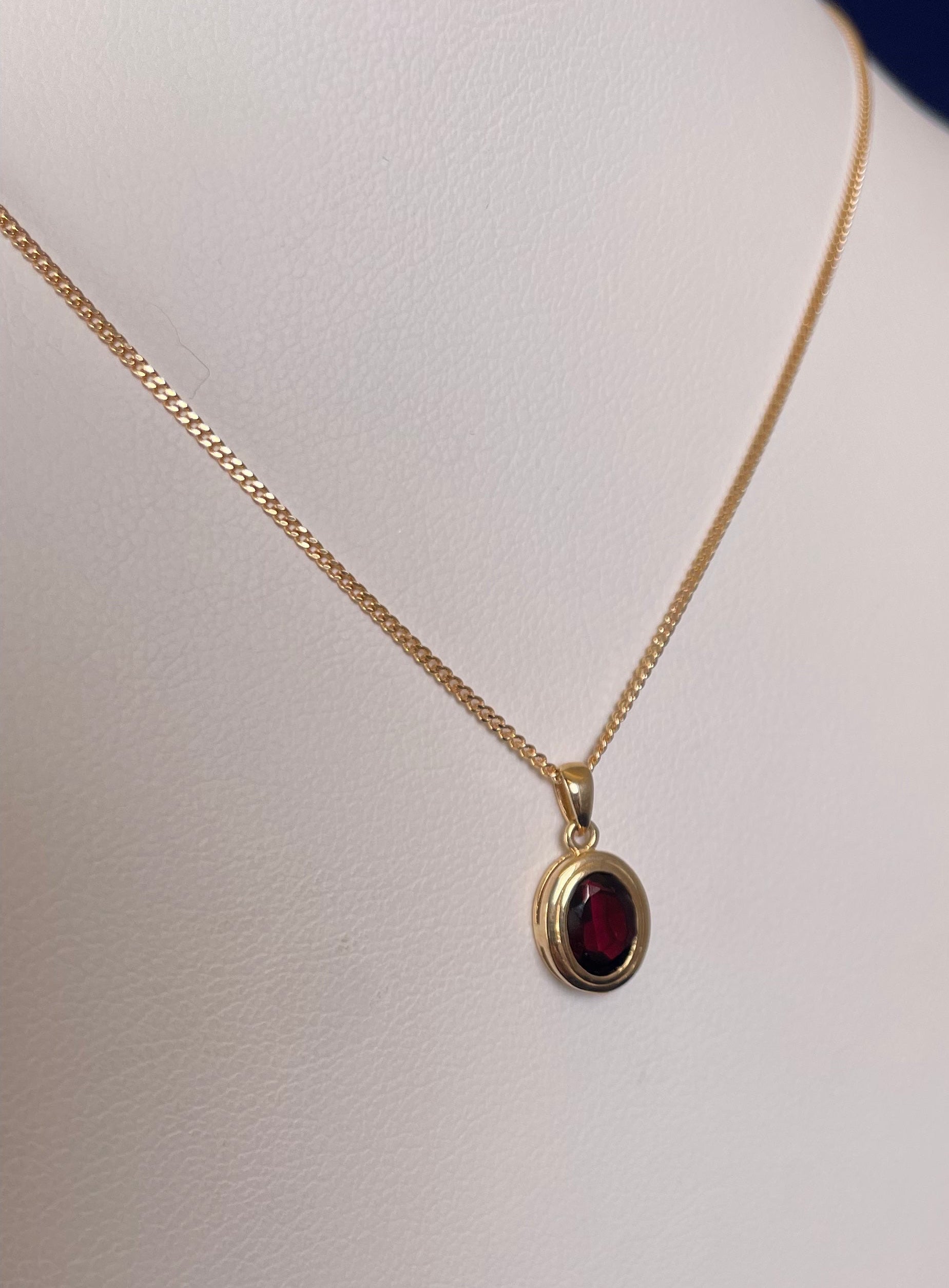 9ct Yellow Gold Oval Garnet Pendant Necklace
