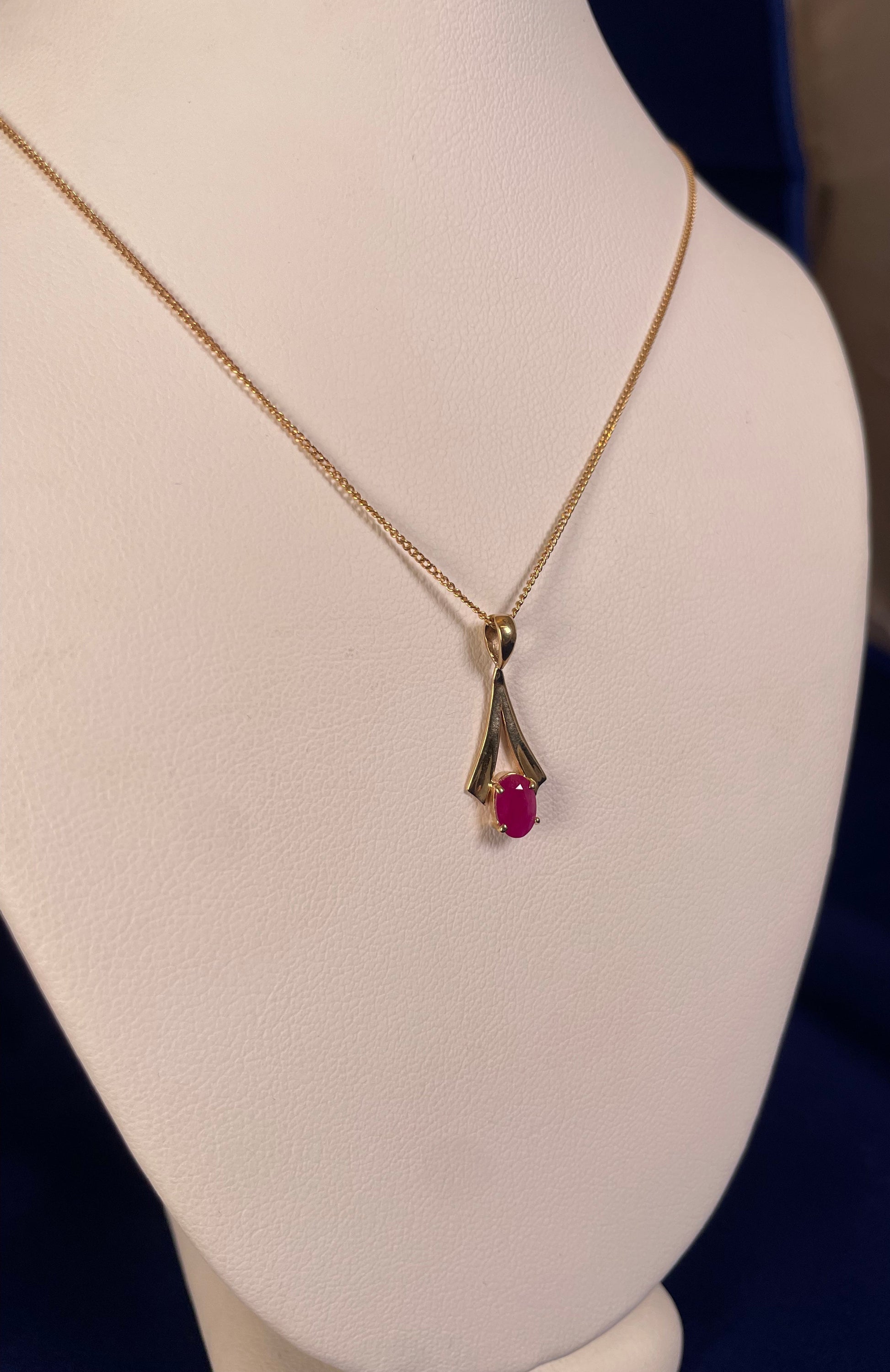 9ct Yellow Gold Oval Ruby Fan Design Pendant Necklace