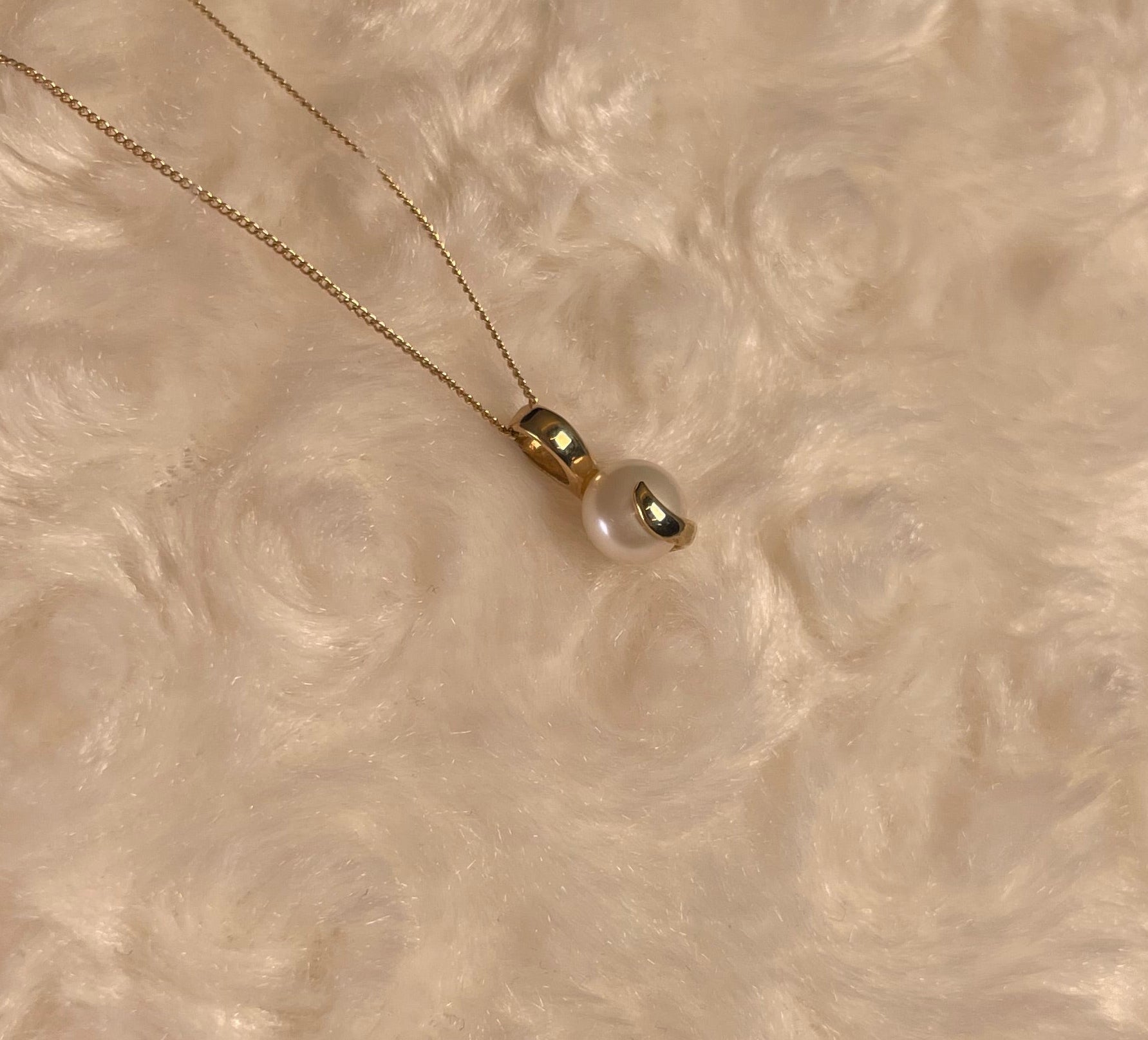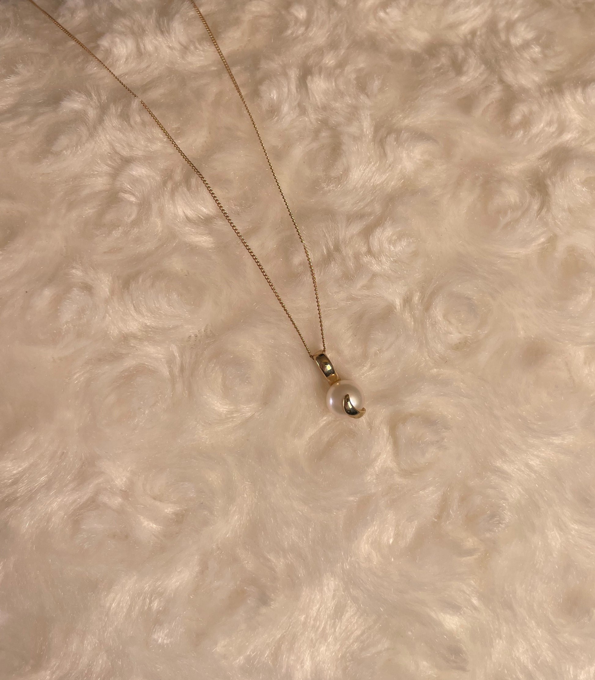 Discover the perfect blend of timeless charm and modern flair with this delightful 9ct yellow gold pendant featuring a lustrous freshwater pearl. Compact yet captivating at 7.5mm, this little treasure hangs beautifully from a refined 16" curb chain that's barely-there at just 0.8g. Wonderfully versatile, it's ideal for mixing and matching with your favourite pieces or wearing as a standalone statement. Pure joy in miniature form.