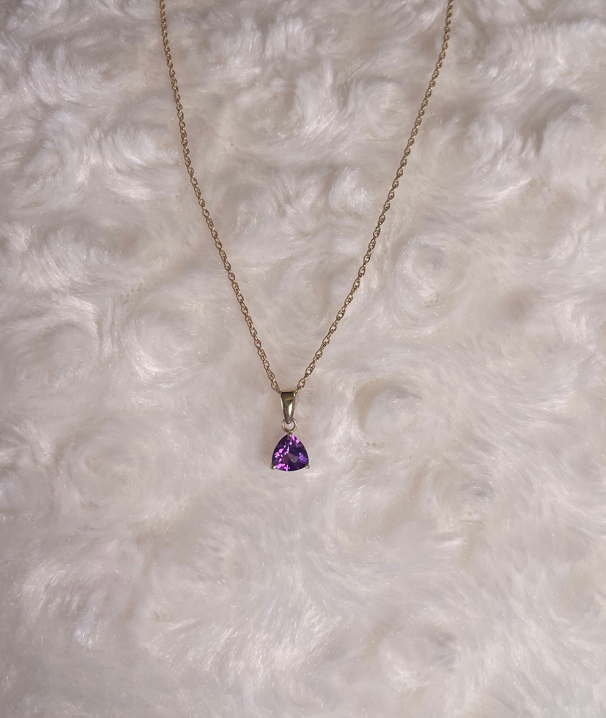 9ct Yellow Gold Amethyst Triangle Pendant Necklace