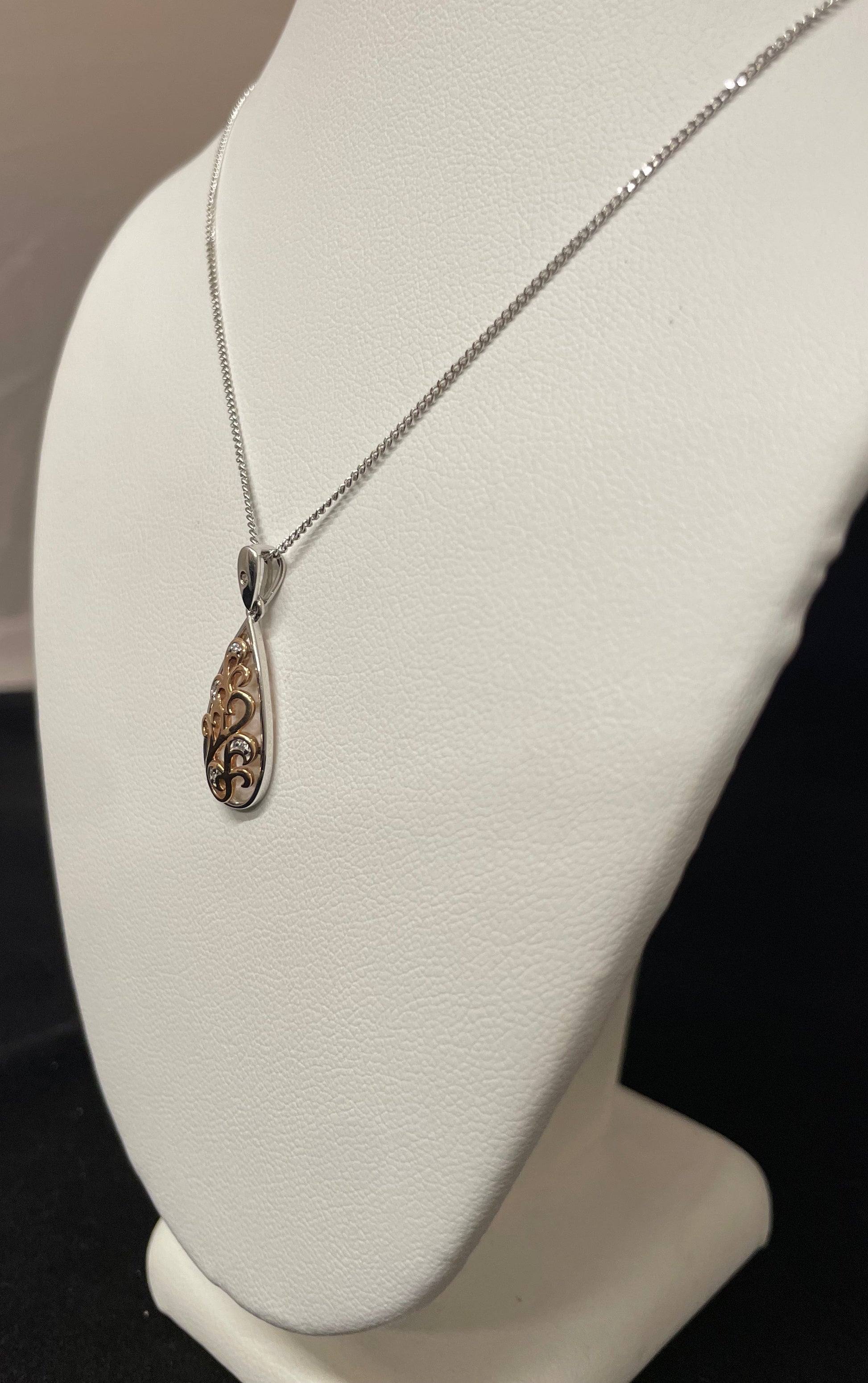 Drip with elegance in this charming teardrop pendant that's equal parts sparkle and sophistication. Crafted from 9ct yellow gold, this delicate lattice design cradles a diamond that catches the light beautifully. At just 23mm, it's the perfect size to make a statement without overwhelming your neckline. Paired with a classic 16" curb chain, this piece weighs a feather at 1.3g for the pendant and 1.9g for the chain—proof that luxury doesn't need to be heavy. Pure gold, pure joy.