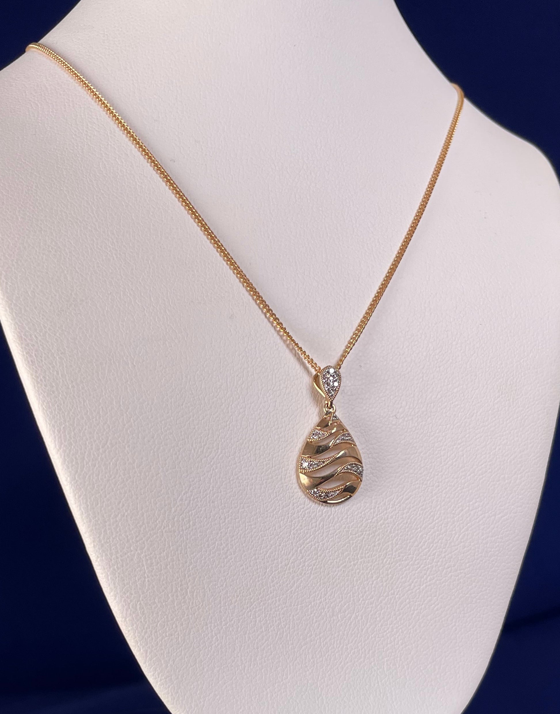 9ct Yellow Gold Teardrop Lattice Diamond Pendant Necklace