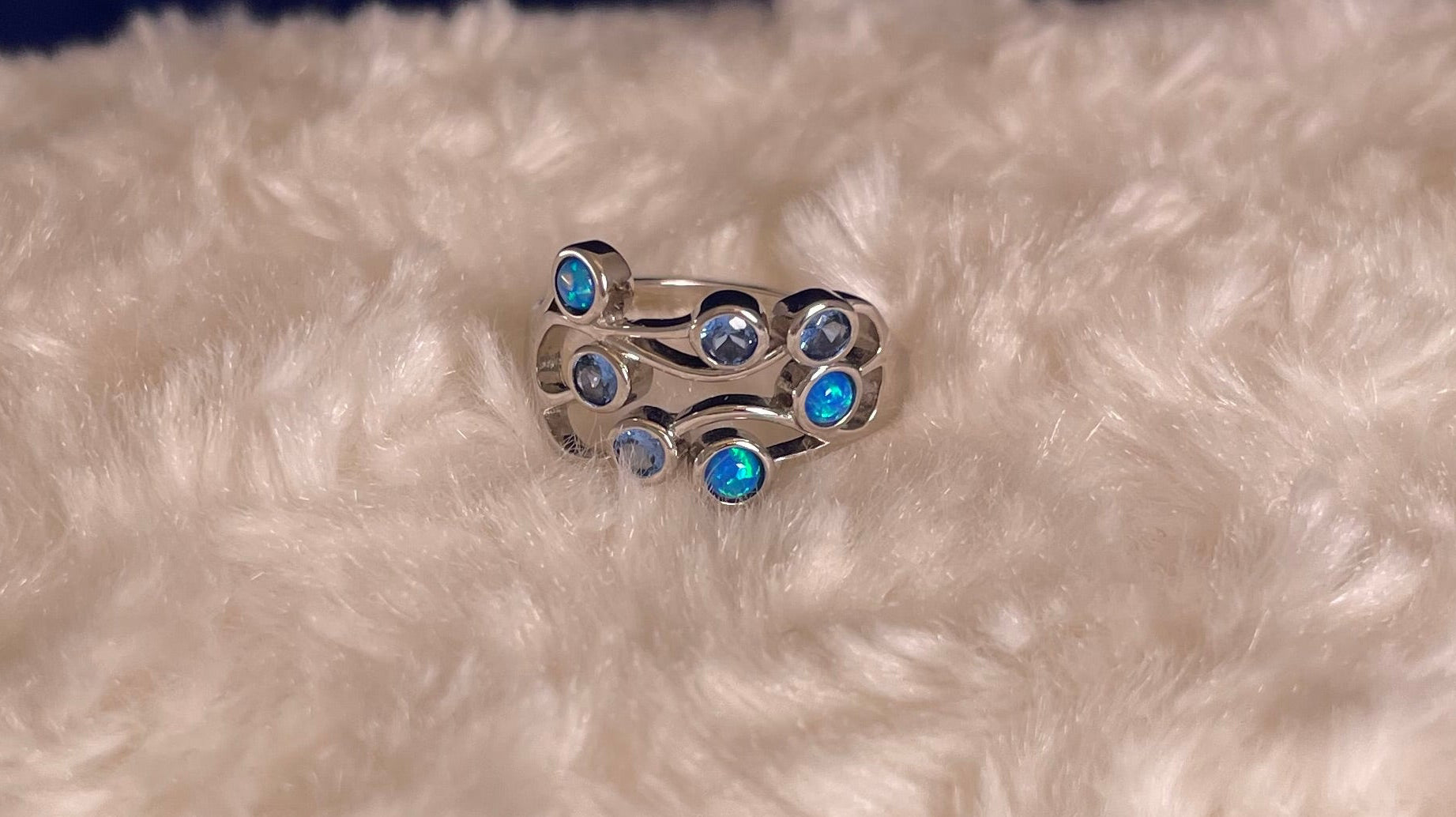 Boodle Ring with Doublets & Blue Cubic Zirconia