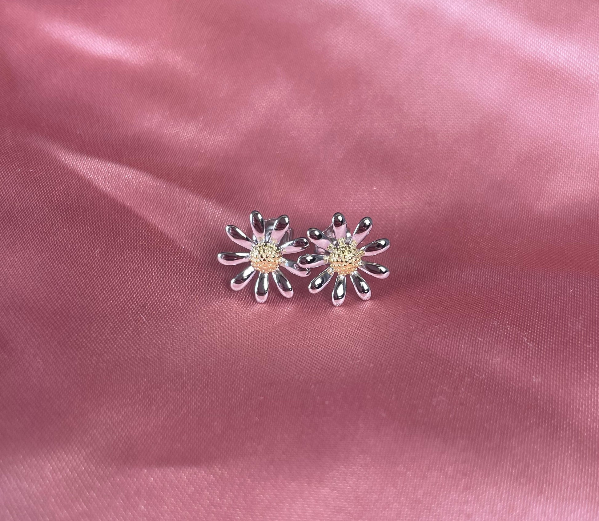 Crafted from sterling silver with rhodium plating for lasting brilliance, these earrings feature a charming daisy design enhanced by a gold-plated centre disc. The combination of precious metals creates an elegant contrast, while the delicate petals offer timeless appeal suitable for everyday wear or special occasions.