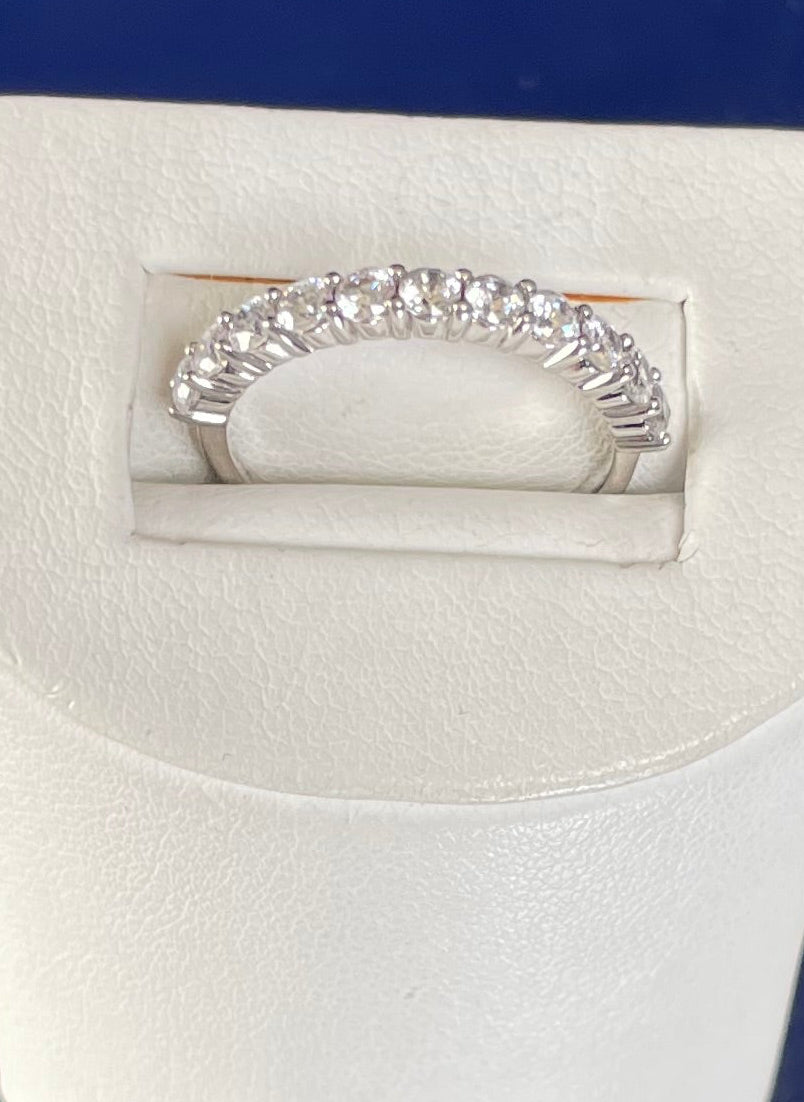 Get ready to sparkle with this Half Eternity Ring featuring 11 dazzling Cubic Zirconia gems claw-set on a rhodium plated band. Weighing in at 1.6g and available in size M, it's the perfect combination of elegance and bling. Time to add some glam to your jewellery collection!