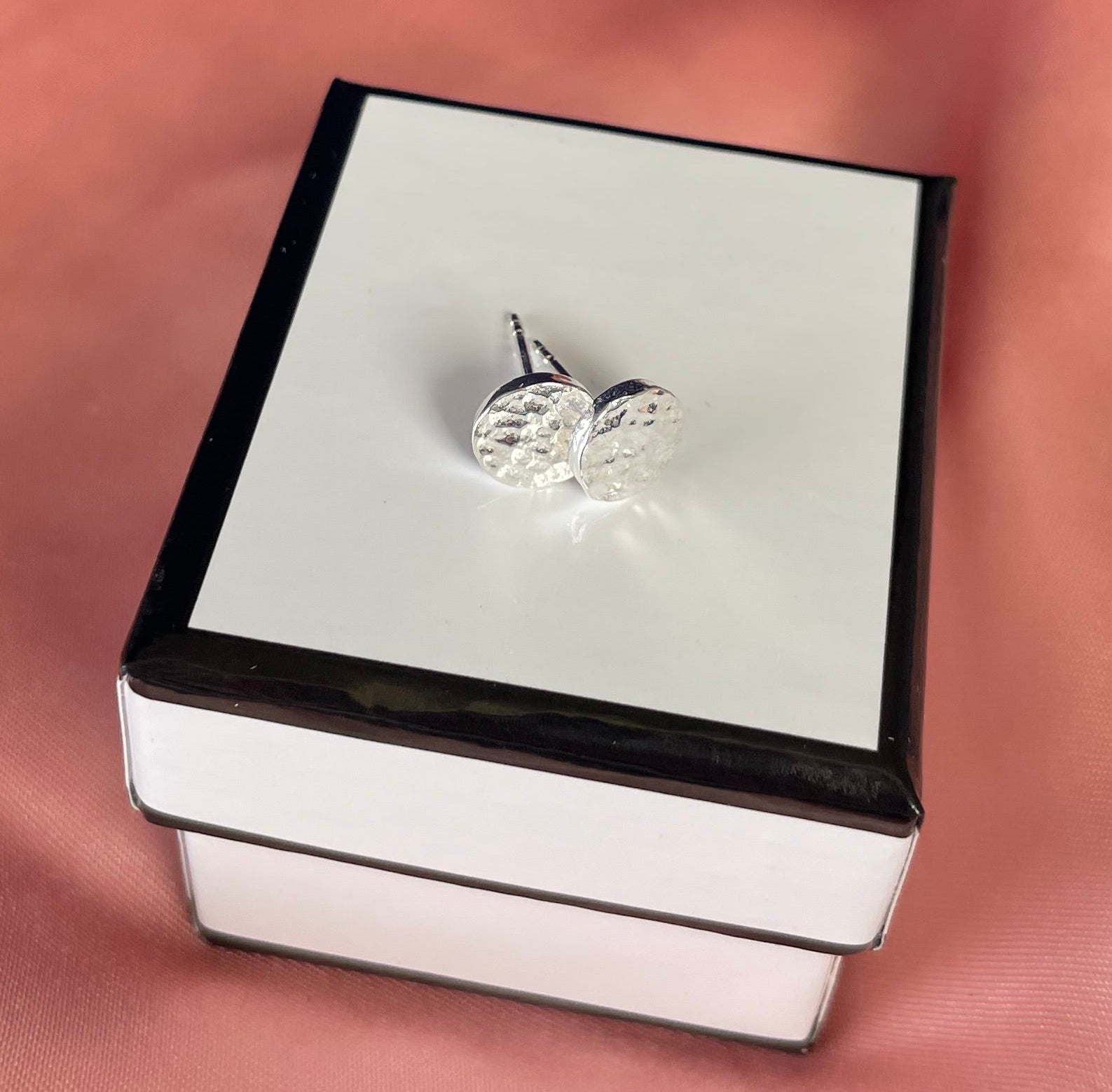 Delicate disc earrings with a beautifully textured hammered finish, crafted from rhodium-plated silver for a lustrous, tarnish-resistant shine. These understated beauties catch the light with every movement, adding subtle sparkle to any look without demanding attention. Perfect for everyday wear or layering with other pieces.