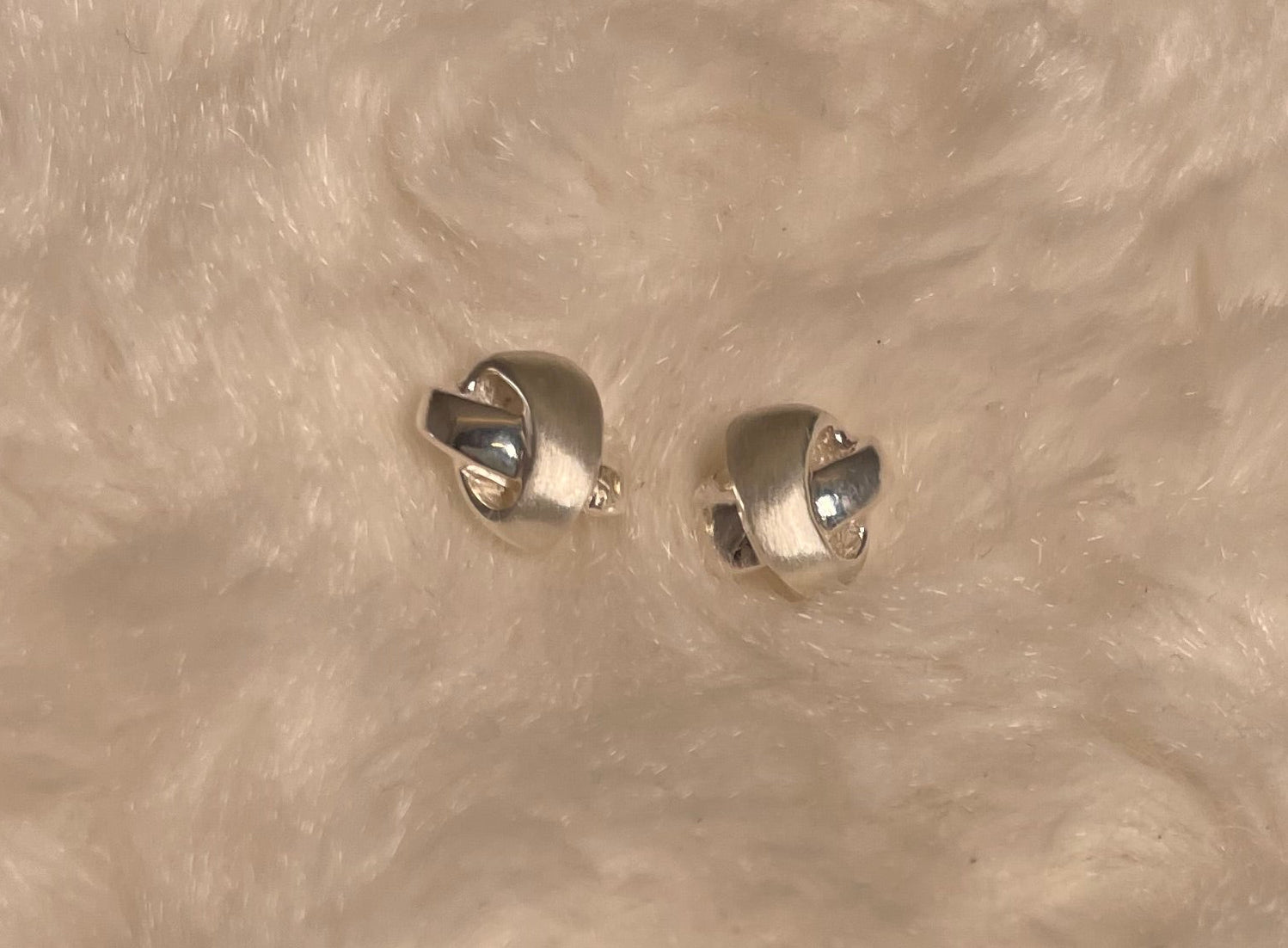 Twisted knots meet modern elegance in these captivating silver earrings. Featuring a striking contrast between polished shine and subtle brushed textures, each pair is rhodium-plated for lasting brilliance and durability. A playful take on timeless sophistication—perfect for adding a touch of understated charm to any look.