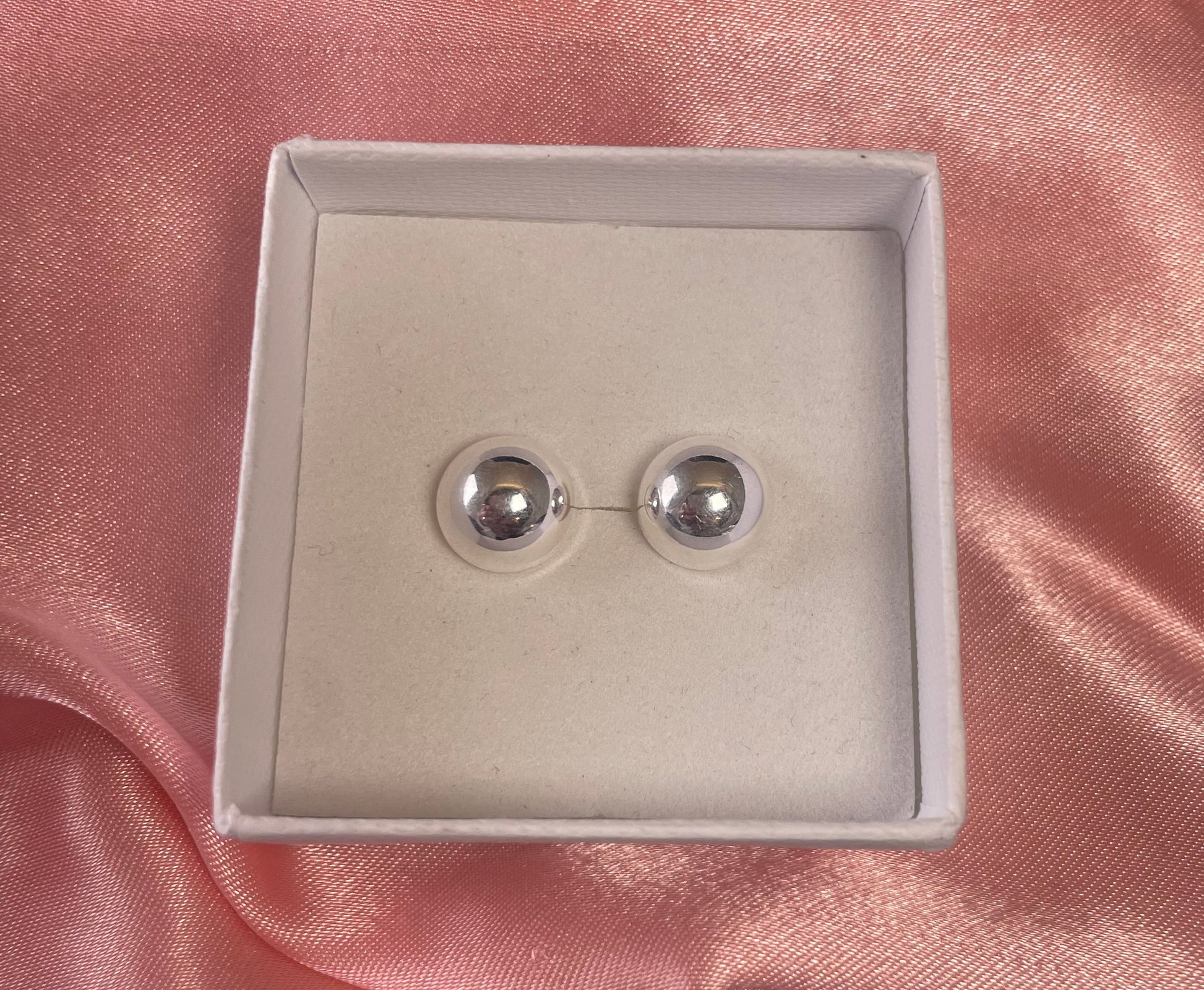 Go bold with these generously sized silver ball studs, wrapped in a protective rhodium coating that keeps them gleaming like new. They're the kind of earrings that do the talking for you—no need for lengthy explanations when your jewellery speaks volumes. Simple, striking, and ready for anything.