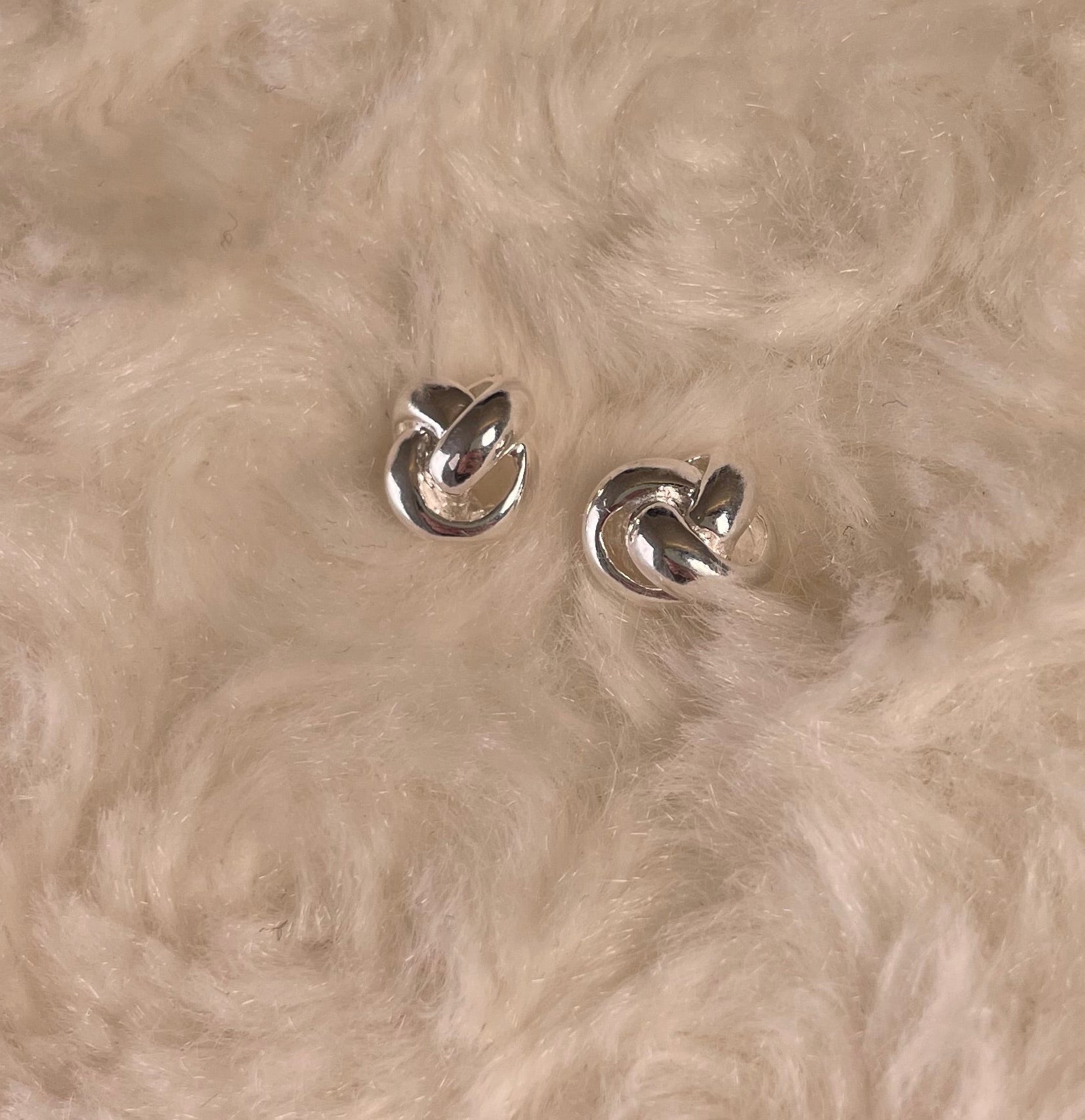 Large knot Earrings Rhodium Plated Silver