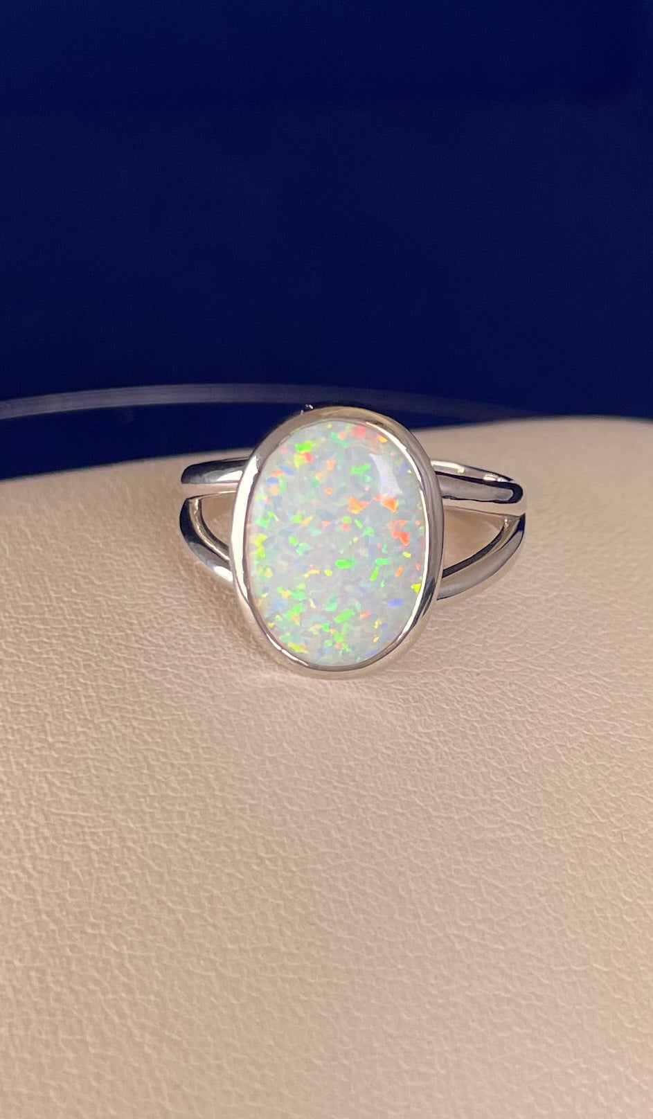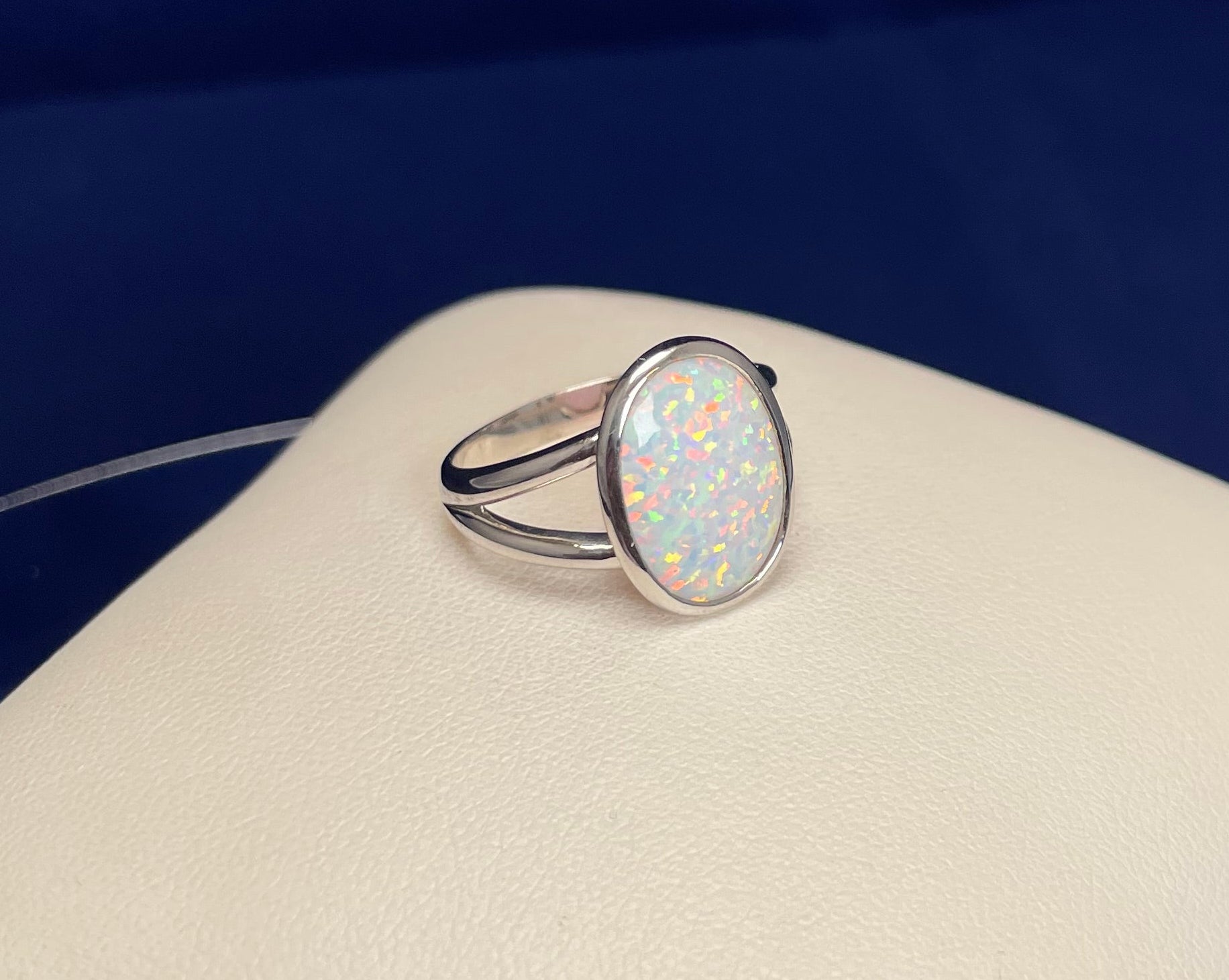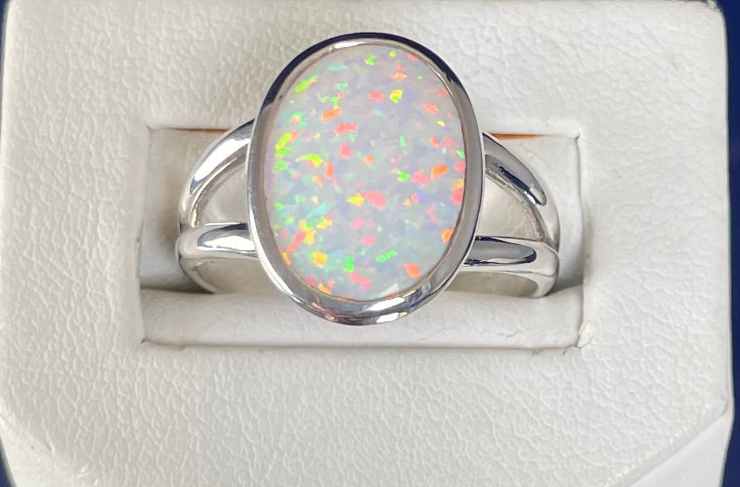 Oval Split Shoulder Ring with a Synthetic Opal