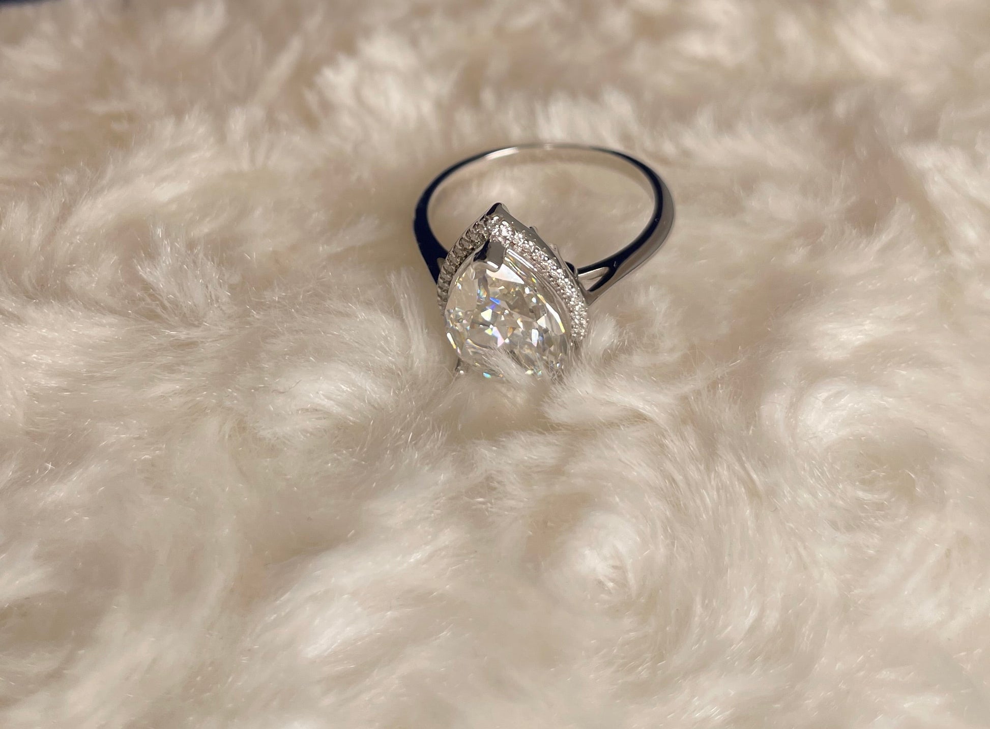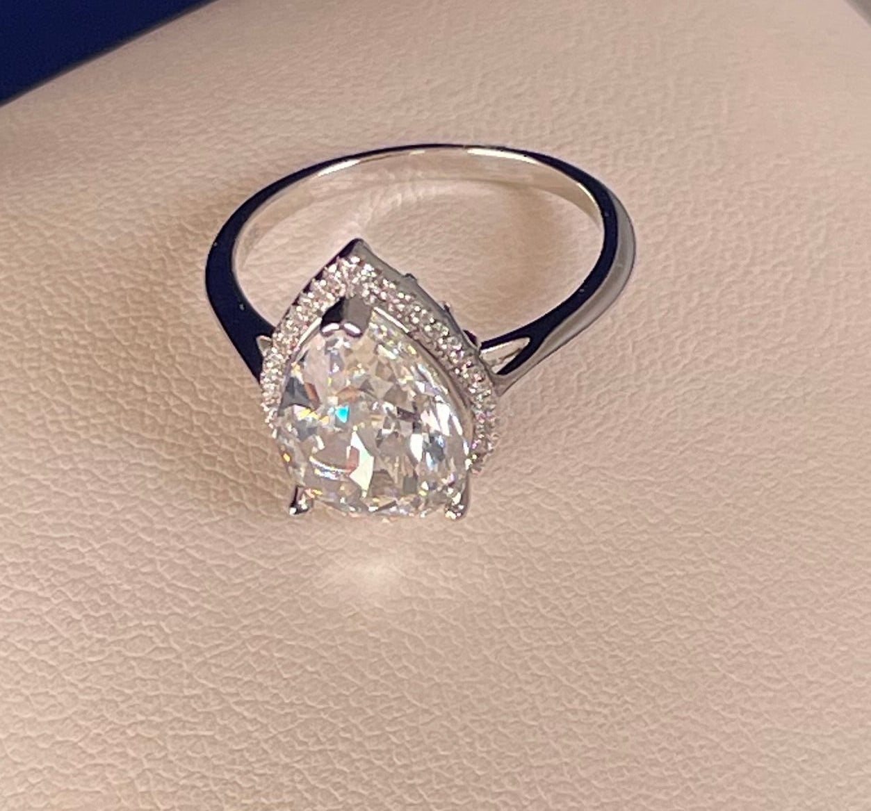 Rhodium Plated Silver Pear Shape Cubic Zirconia Ring