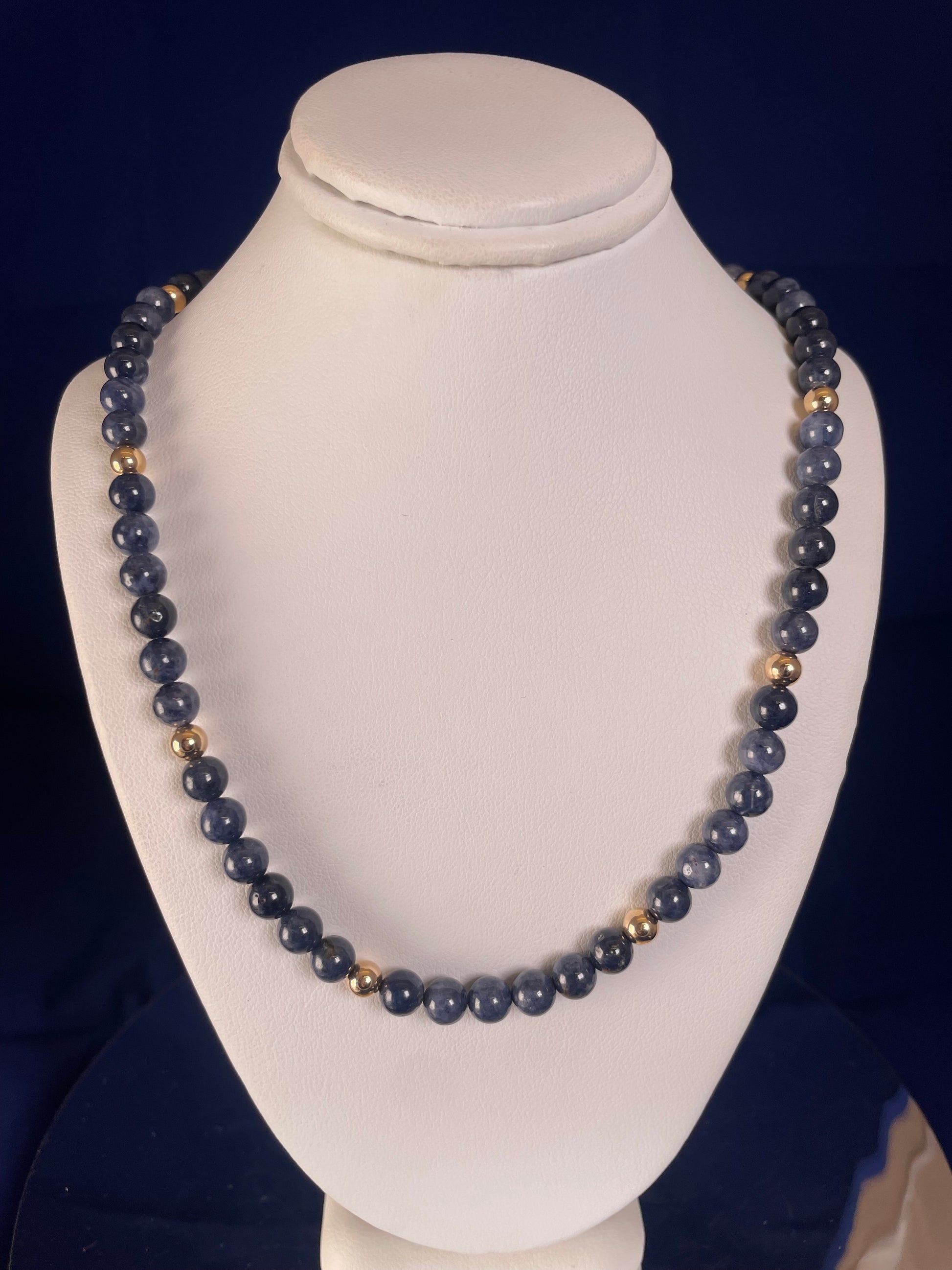 Sapphire & 9ct Yellow Gold Beaded Necklace